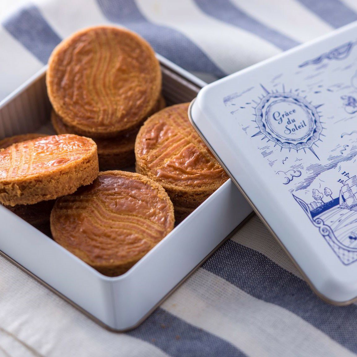 ガレット・ブルトンヌの表面に描かれた伝統的な模様は、太陽の光を表現しています。「太陽の光がたくさんの人たちに笑顔を届けるように、この焼菓子で笑顔を届けたい」、そんな岸本の想いが込められたガレットです。