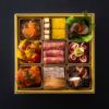 一の重は日本古来の縁起物づくし。二の重は黒毛和牛のローストビーフをはじめ、海老のチリソース、鮑までが多彩に。和洋中の料理31品が豪勢に並ぶ二段重です。