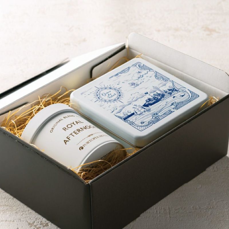 人気の缶入り焼菓子とリーフティーのセット。