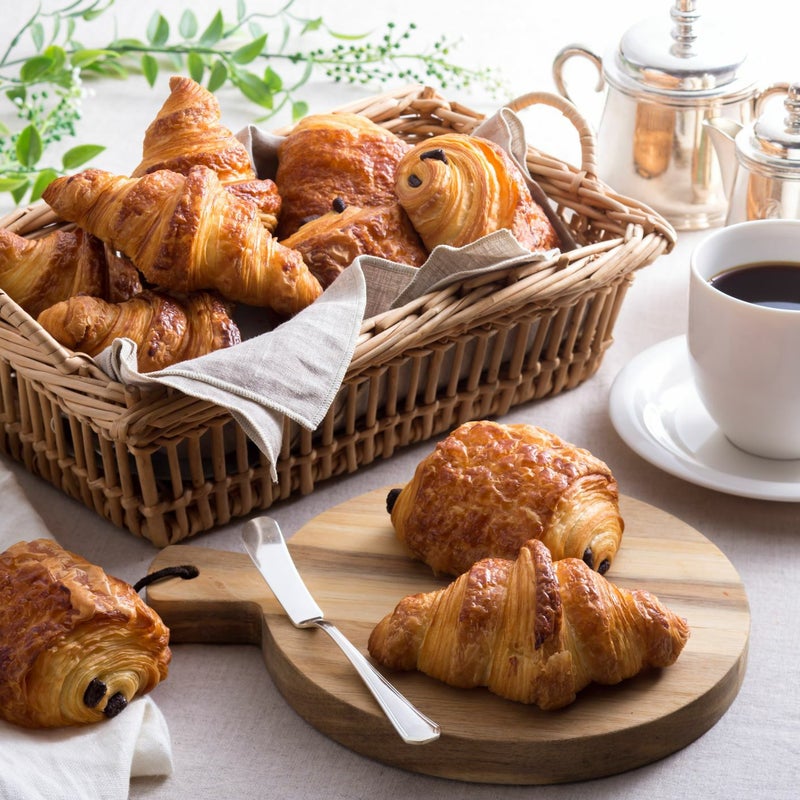 フランス産小麦と塩を使用したクロワッサンと サクサクのクロワッサン生地にチョコレートをサンドしたパン・オ・ショコラの詰め合わせです。 ご注文ごとに焼き上げ 冷凍してお届けします。 ご家庭でホテルメイドの美味しさをお愉しみください。 自然解凍で手軽にお召し上がりいただけます。 お好みでバターやジャムと合わせたり、サンドイッチにしてもおすすめです。 記念日のお祝いや季節のギフトにおすすめです。
