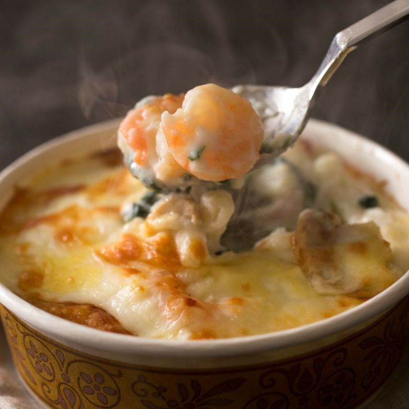 えびやほうれん草、マッシュルームなどが入ったマカロニグラタンです。えびの旨味を引き立てるクリーミーなホワイトソースは絶品です。 簡易包装での発送となります。 ※冷凍便でのお届けです。温度帯の異なる商品との同梱は致しかねますご了承ください。