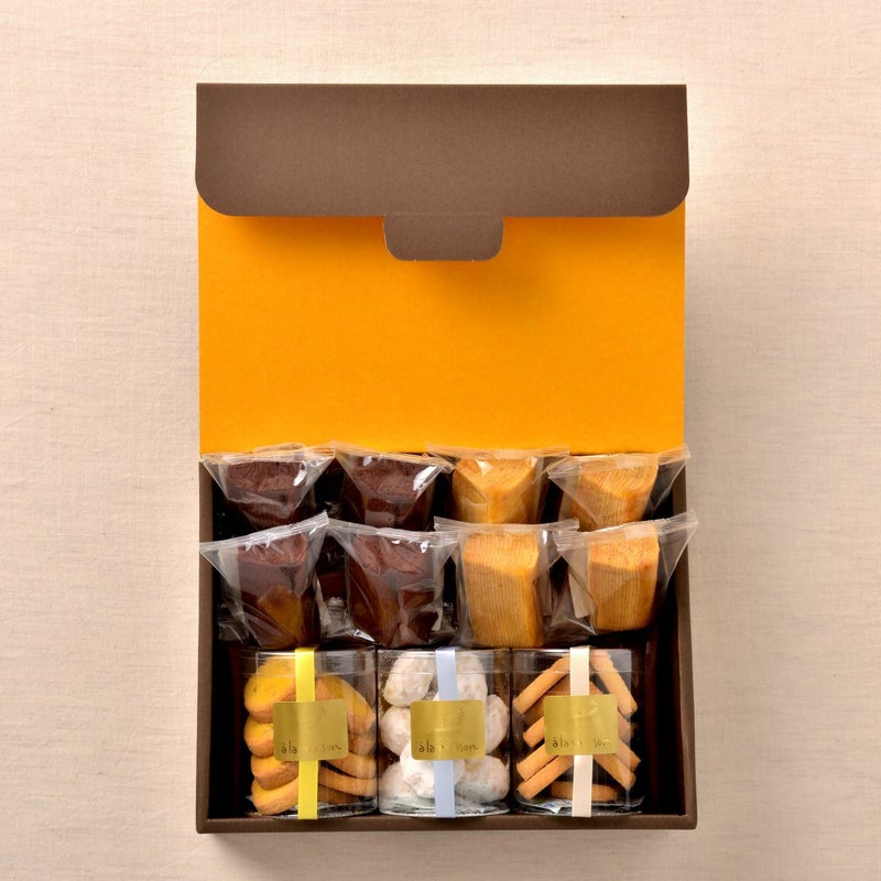 クッキー3種類とカットバウム2種類の詰め合わせです。 ギフト用化粧箱でご用意いたします。