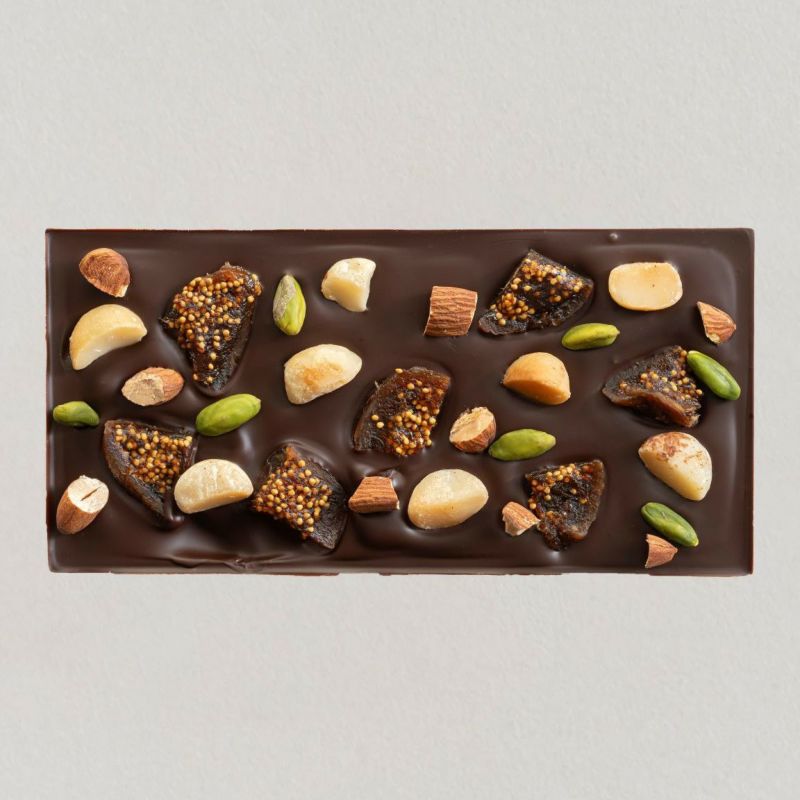 Tablet Chocolate Dark 華やかな見た目のタブレットショコラ 。 ドライフルーツとナッツをダークチョコレートにちりばめました。
