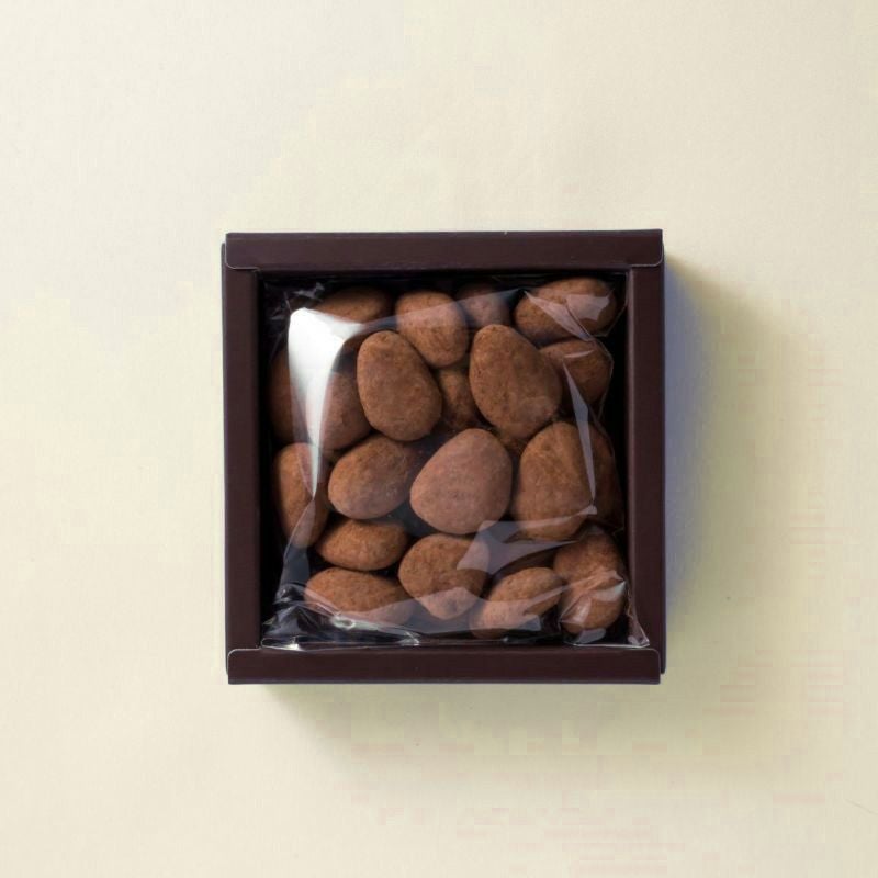 Amandes Chocolates Cocoa アーモンドとチョコの相性が抜群のショコラ。 ほろ苦いカラメルとダークチョコレートでアーモンドをコーティングしました。 香ばしくローストされたアーモンドとチョコの相性は抜群です。