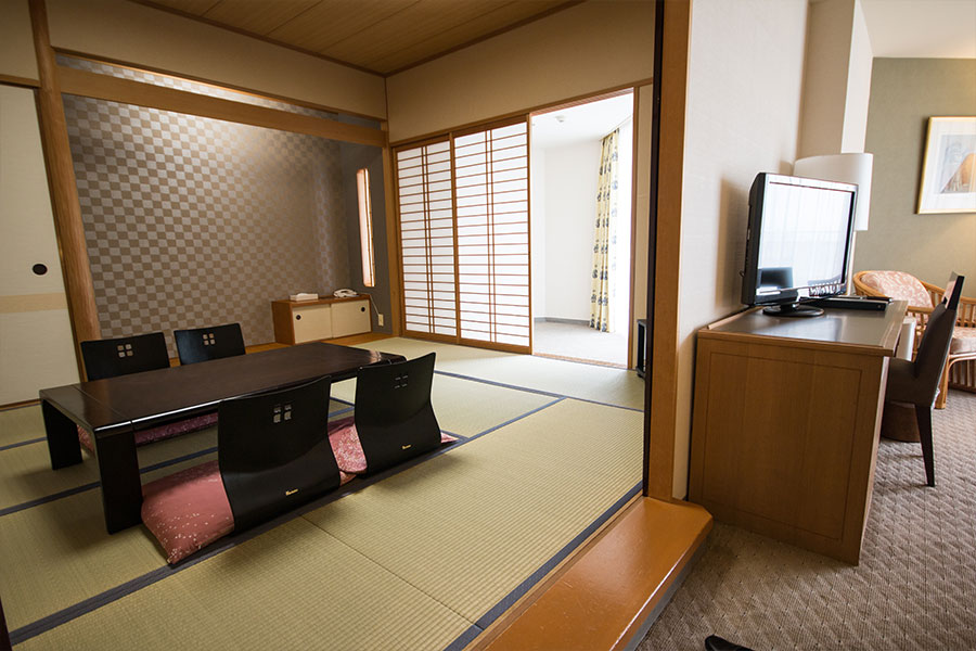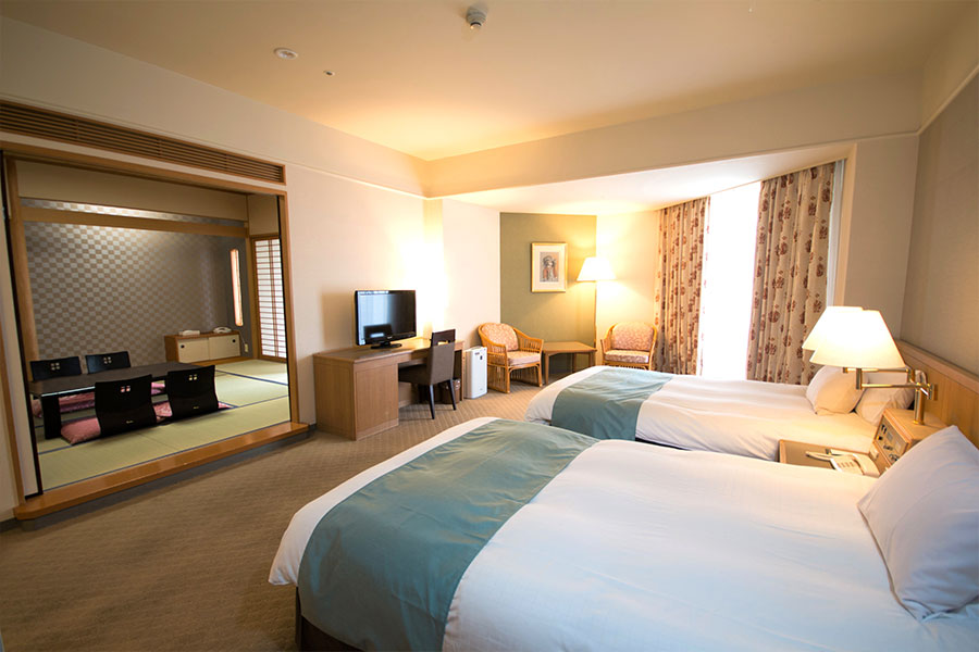 ・南館和洋室 ・77.1平米(和室部分10畳)+バルコニー付 ・ツイン(2ベッド)+和室(布団3組まで) |