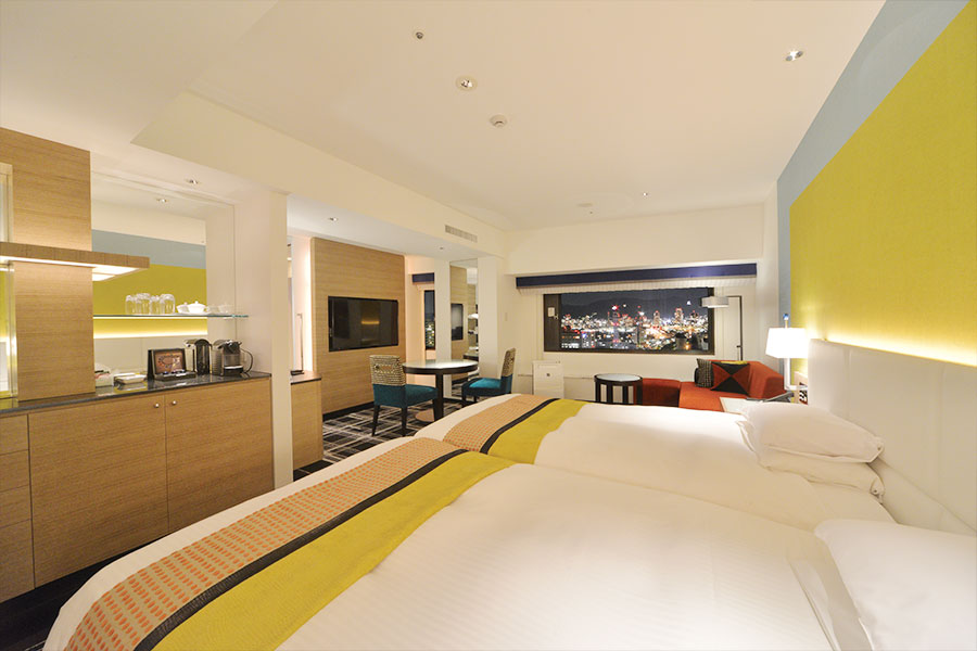 ・本館ハーバービューデラックス または ビューバスデラックス ・43.1平米 ・ツイン(2ベッド・ハリウッドツインタイプ) |